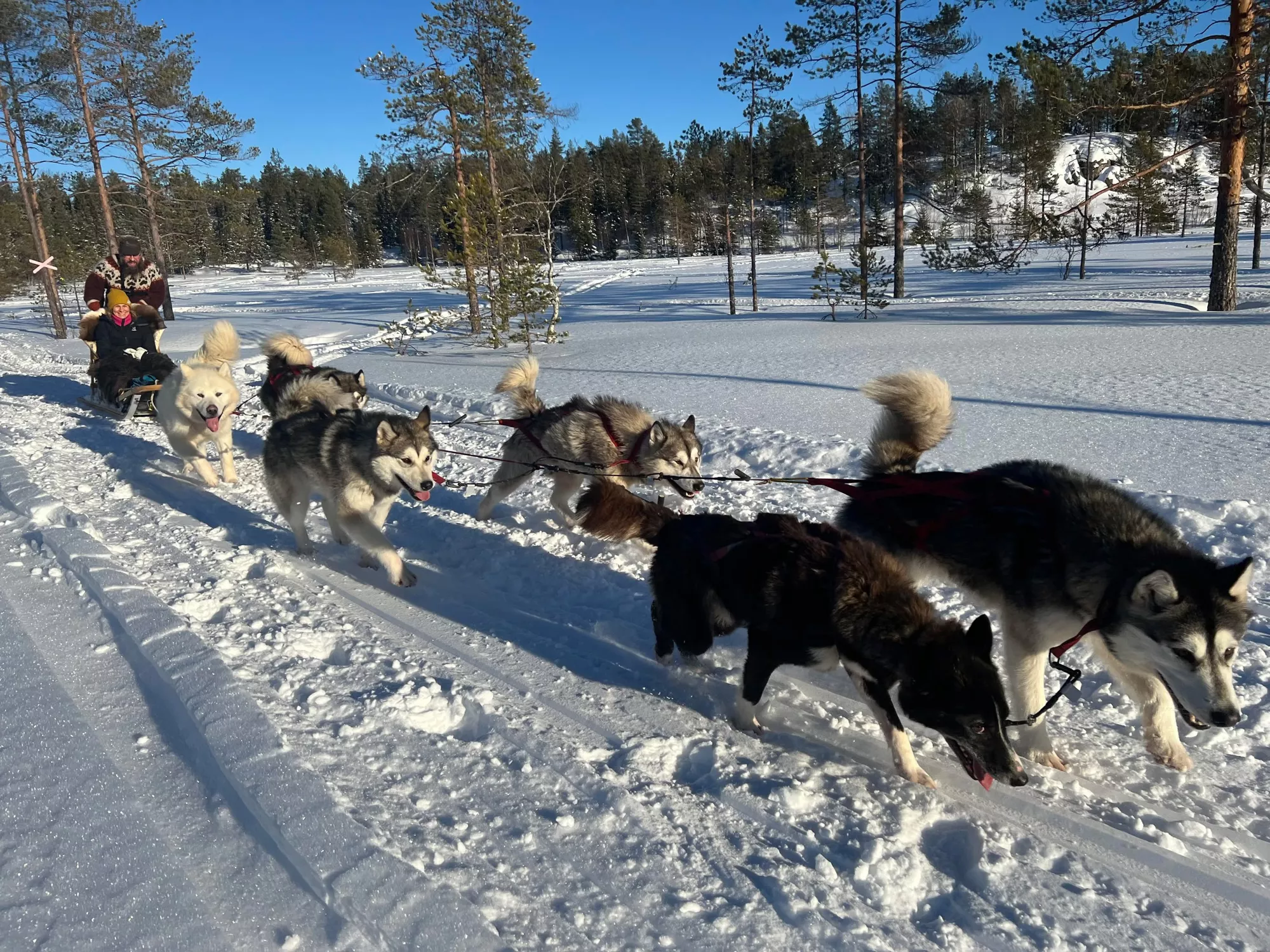 Känn kraften från våra erfarna draghundar medan du susar fram över glittrande snö.